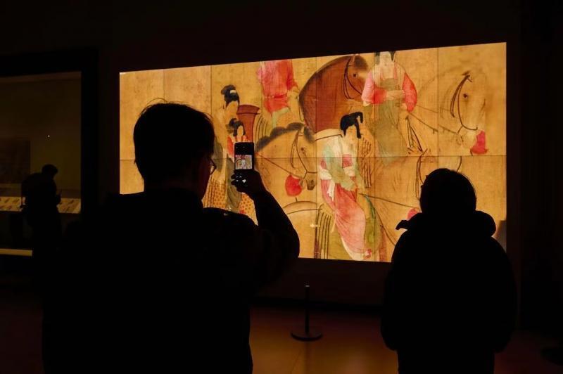 科技赋能让文物细节“纤毫毕现”。本次展览借助300亿像素类纸透露本领,不雅众可通过交互拓荒以“毫米级”精度放大《虢国夫东谈主游春图》,从衣袂褶皱的线条里触摸盛唐的织造工艺,从马匹鬃毛的晕染中感受古东谈主的文字意趣。这种“毫米级”的不雅赏体验,不仅拉近了公众与文物的距离,更让千年前的创作经过变得可感可触。