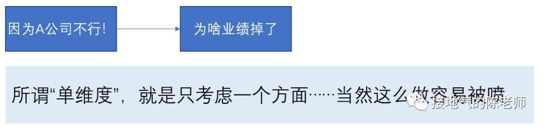 0级深度最浅的分析,等于单维度作念对比。比如分析为啥功绩没达标,用公司维度一双比,发现:5个分公司,有2家没达标。此时,论断等于:“因为2个分公司没达标,是以功绩没达标”