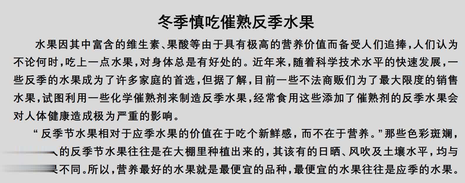 大夫进一步证据,反季生果由于汲引形状和运输要求的异常性,确乎存在一些问题。